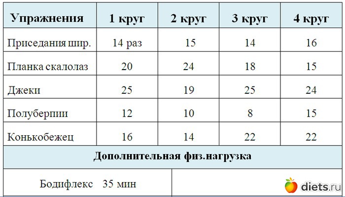 И да, кто делает тренировку со мной, в табличке это мой результат, вы можете делать и больше раз. Дополнительная нагрузка не по заданию тренера, это мое желание