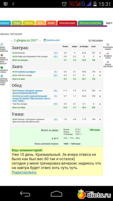 все окончательное меню собираюсь на тренировку уже.
