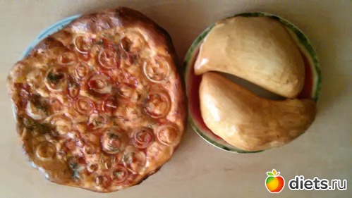 Обед - лепешка с томатной пастой и луком