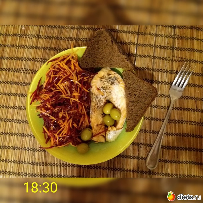 У: форелька, овощной салат, оливки, бородинский хлеб и потом ещё яблочка захотелось