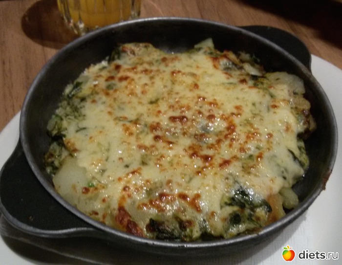 Это отварная картошка со шпинатом и сверху все с сыром и брынзой
