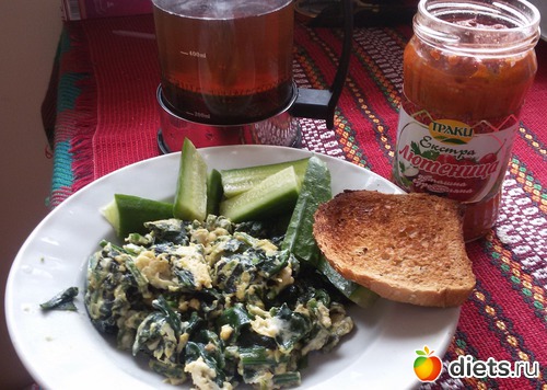 А это я уже сама себе готовила. Шпинат с яйцом.