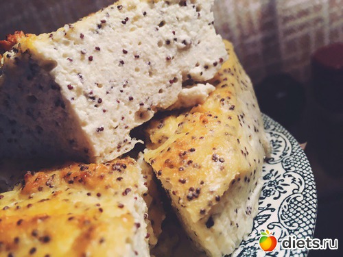 Я делаю всё на водяной бане, потому что духовка печет странно, поэтому у меня выходит хрустящая корочка, но такая нежность внутри. Просто ставим форму в другую посудину, налив перед этим на 1/3-1/2 по форме воду (по наполненности формы с запеканкой), ну и всё. Готовится так дольше, но мне нравится больше.