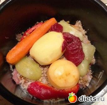 Морковь, картофель и репу очищаем от кожуры и кладем в чашу, НЕ разрезая на куски (для лучшего сохранения водорастворимых витаминов).