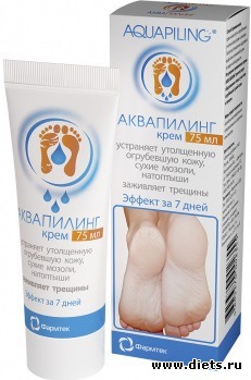 еще мне понравился крем Аквапилинг, сперва ножки распариваем, обрабатываем пемзой (ну или другим подходящим для вас способом) и этот крем на ночь, делать регулярно
