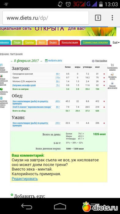 Калорийность продуктов