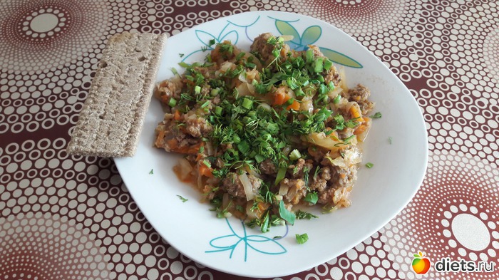Обед - тушеная капуста с говяжьим фаршем + хлебец... Читать полностью