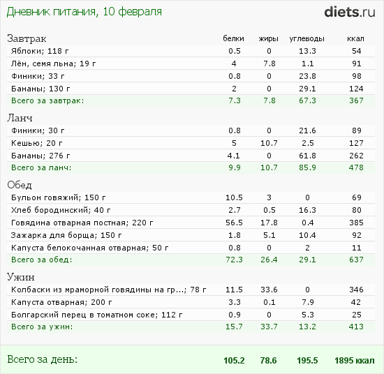 Вес после витаминного калорийностью 1903 ккал порадовал отвесом в 300 г