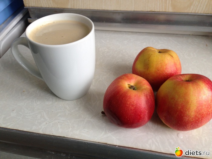 Завтрак: яблоки и кофе