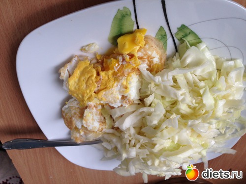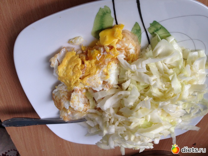Обед: три жареных яйца и салат