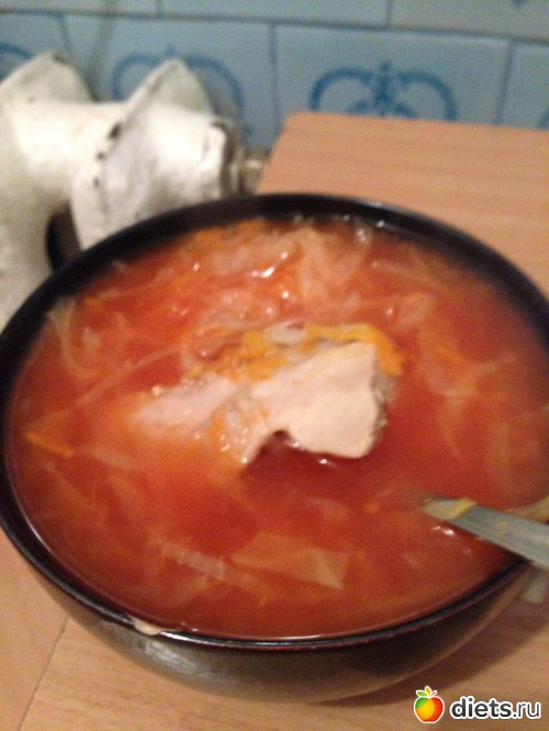 Ужин: борщ из капусты с курицей.