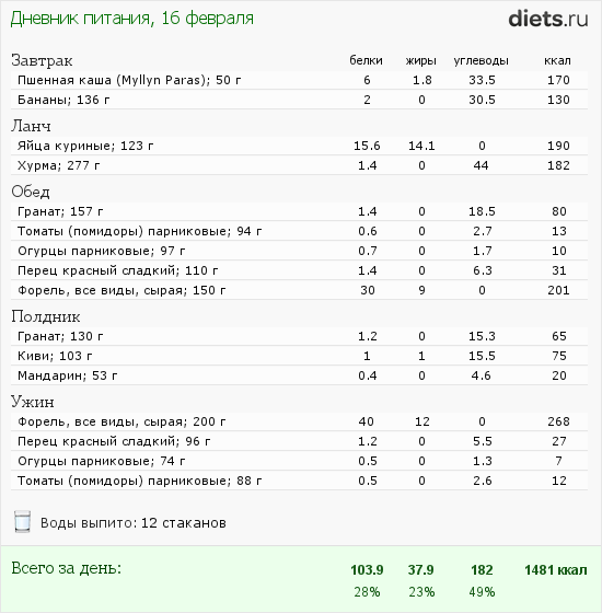 Воды на самом деле выпиваю больше, чем 12 стаканов, просто считать лениво.