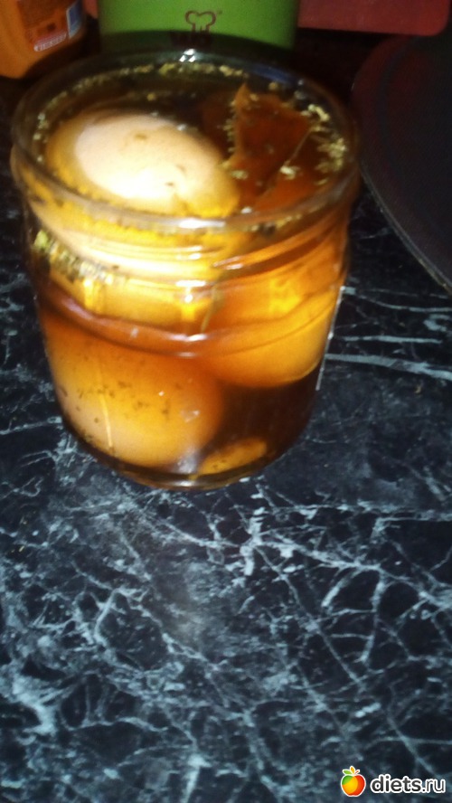 По яйцам постучать, что бы они слегка растрескались, положить в банку, залить охлажденным маринадом. Поставить на 2 дня в в холодильник. Через 2 дня можно подавать с горчицей и хлебом со сливочным маслом.