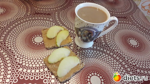 Перекус - 2 хлебца с арахисовой пастой и яблоком + кофе с молоком