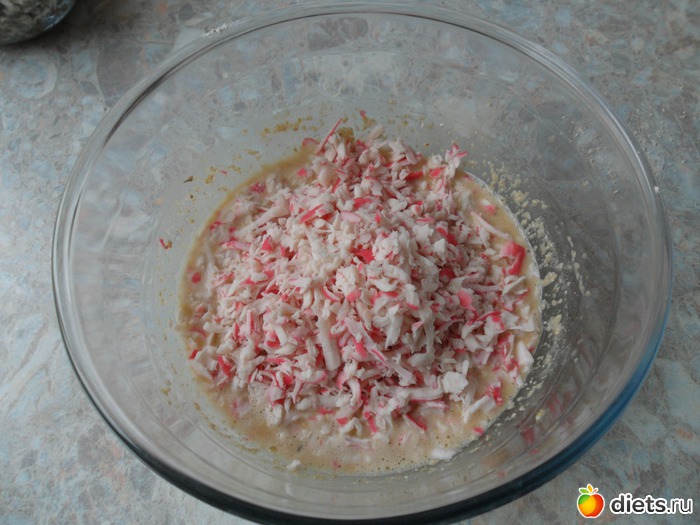 Измельчаем их (я на тёрке), и добавляем в омлетную массу.