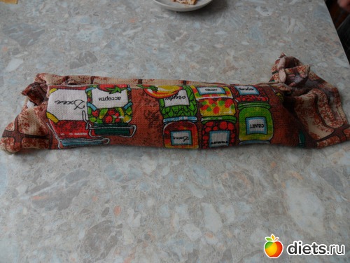 хоть ты тресни, половина омлета осталась на ней... Заворачиваем рулетиком в это полотенце, чтобы немного "отпыхло".