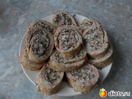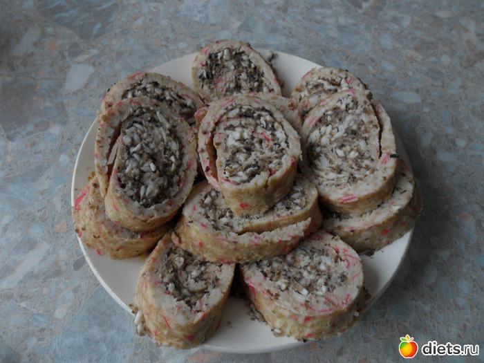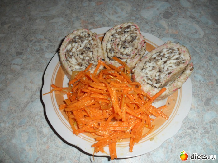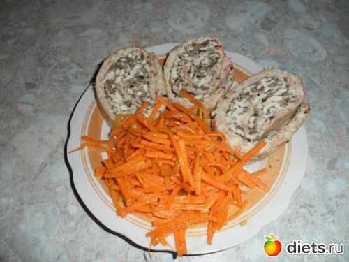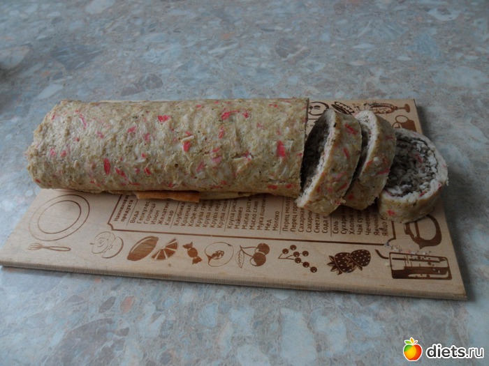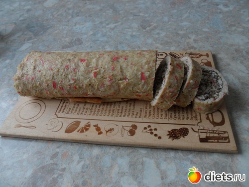 Рулет получился очень нежный на вкус, и довольно сытный, что мне наесться хватило и двух кусочков...