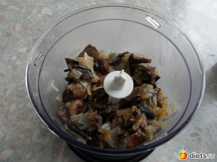 Сначала я приготовила начинку - отварила грибы в подсоленной воде, обжарила их с луком.