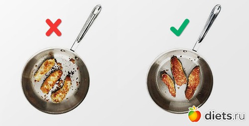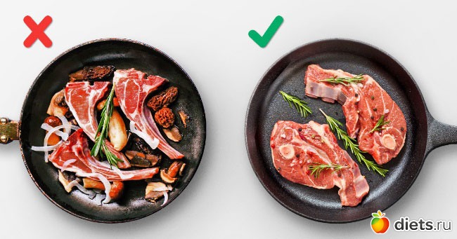 Запомните: если вы хотите приготовить мясо с хрустящей корочкой, его нужно выкладывать на сковороду так, чтобы кусочки не соприкасались друг с другом. В противном случае блюдо будет тушиться.