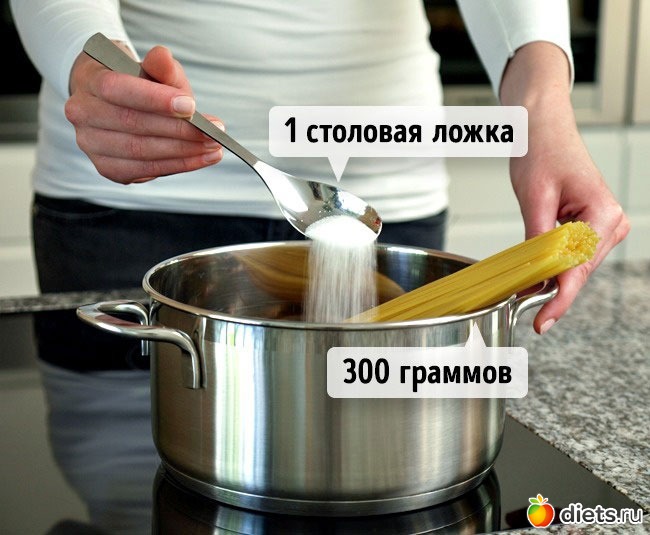 Золотое правило при приготовлении макарон — хорошо солить воду, в которой они варятся. Иначе на выходе вы рискуете получить безвкусную массу, которую не спасёт уже никакой соус. Если вы никак не можете определиться с пропорциями, то вот ориентир: одна столовая ложка соли на 300 граммов пасты.