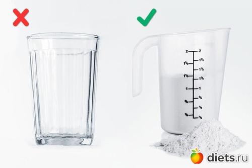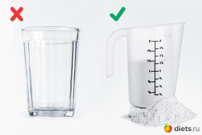 Многие из нас отмеряют количество ингредиентов для теста с помощью граненого стакана, забывая при этом, что в него помещается разное количество сыпучих и жидких продуктов. А ведь для выпечки крайне важно точное соблюдение пропорций. Поэтому если вы не помните все таблицы мер и весов наизусть, то лучше использовать специальную мерную чашку или кухонные весы.