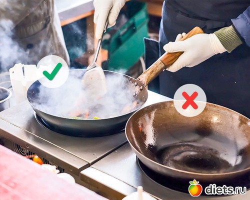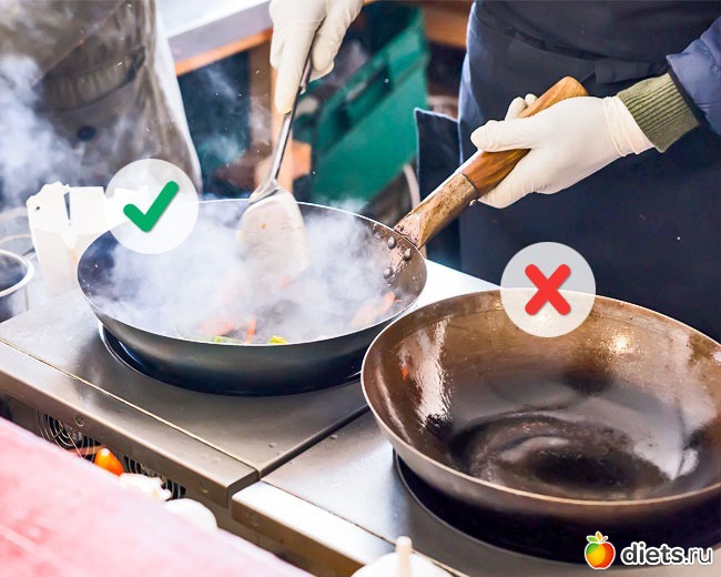 Опытные повара говорят: «Если ты считаешь, что сковорода уже достаточно горячая, то подожди ещё две минуты и только тогда приступай к готовке». Хорошо разогретая сковородка необходима при жарке овощей и для создания той самой хрустящей корочки на мясе.