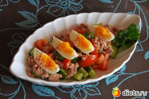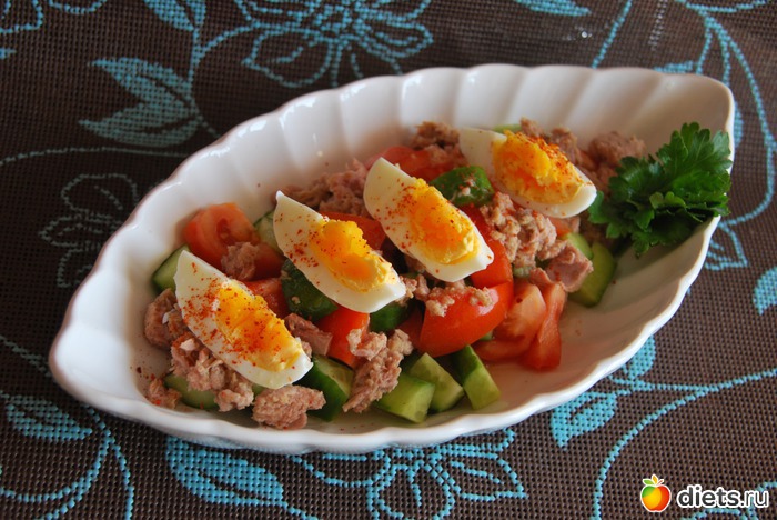 Обед: Салат из свежих овощей с тунцом и яйцом