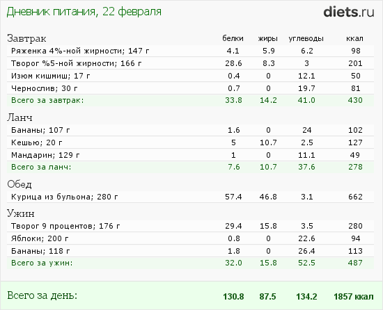 Калорийность продуктов