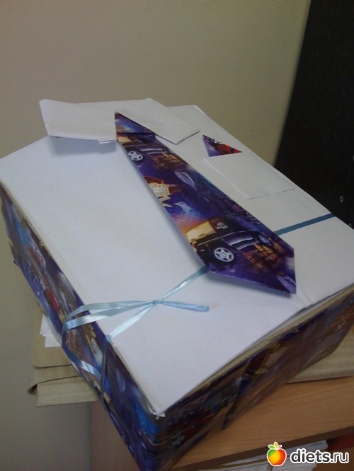 Нашему мальчику из отдела сделала не пакет для подарков, как вчера писала, а разошлась и сделала вот такую коробочку подарочную. Она раскрывается под галстуком.