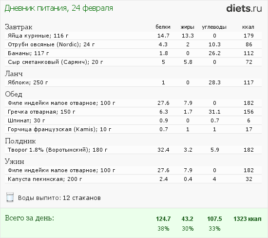 Теперь отчёты. Питание сегодня было низкокалорийным, конечно, но есть почему то не хотелось: