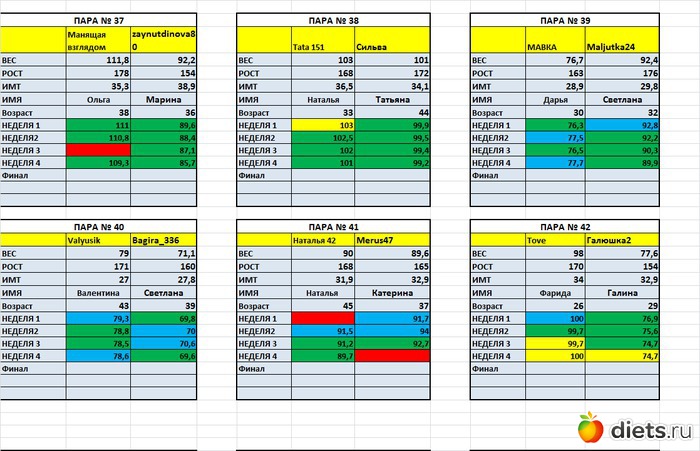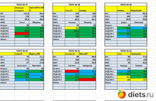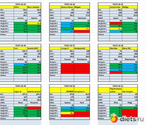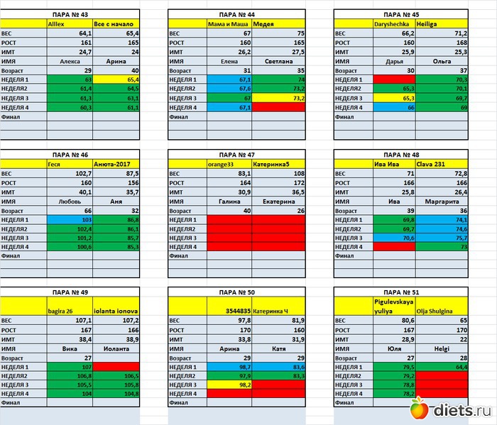 Цветные индикаторы проставлены по сравнению с заявленным весом.