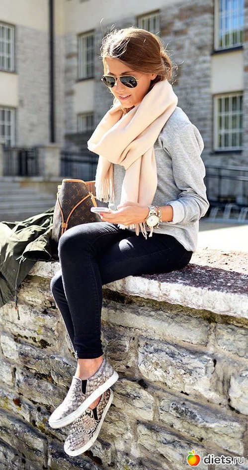 Сочетание скинни ( на то их так и назвали эти джинсы скинни , потому что они на худых) и балеток изуродуют даже самые стройные ноги, уж простите.