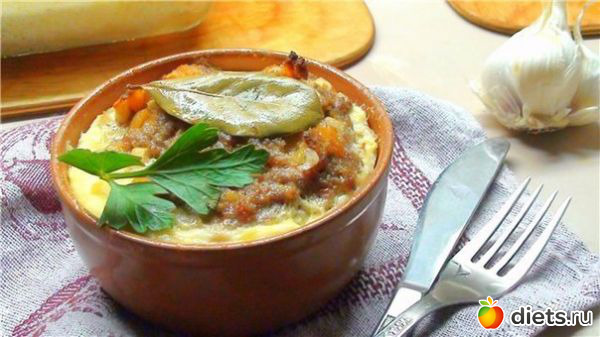 Для заливки смешать яйца с солью и молоком, полить получившейся смесью запеканку (я предварительно слила немного вытопившегося жира) и вернуть в духовку до образования золотистой корочки, минут на 15. Подавать немедленно!