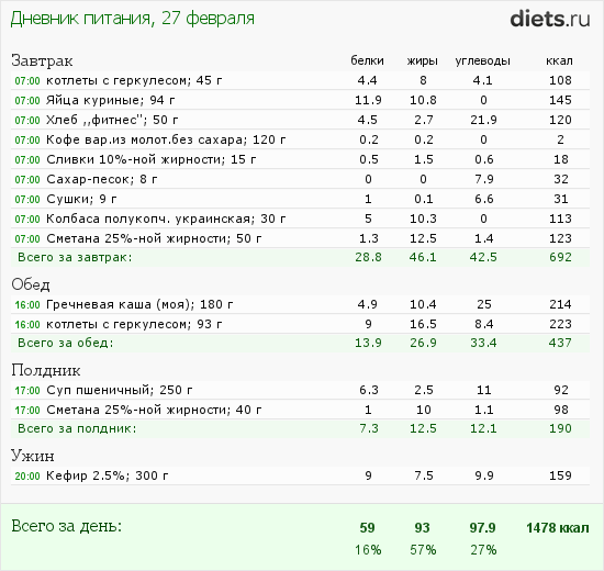при норме 1.5. Приказал следить за питанием... А я то думала что слежу и все в порядке. Ну что ж, следить так следить) Купила кефир для ужинов и ржаной хлеб с отрубями и подсолнечными семечками. Пришла домой, приблизительно накидала в блокнот завтрак и встала к плите. Готовила и считала каждый грамм. Гречка, суп, котлеты.