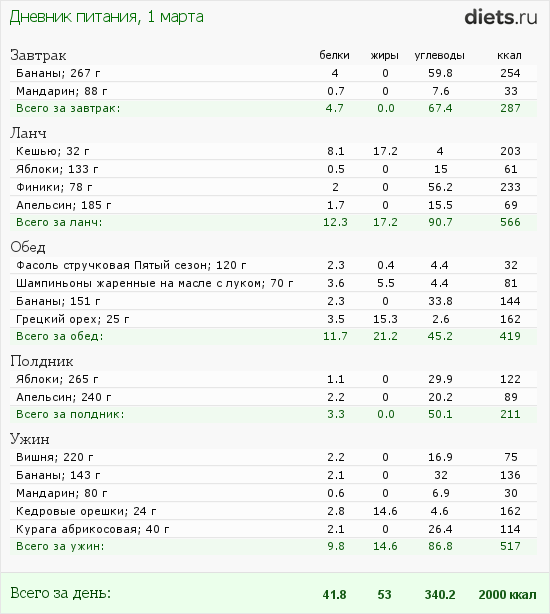 Калорийность продуктов