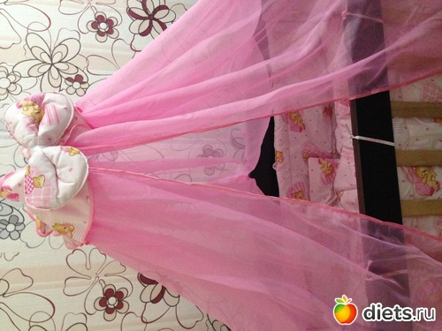 Вчера ходили весь день по торговым центрам и сестра его купила дочке моей в подарок бортики с балдахином и платье с кардиганом на вырост на пол годика.