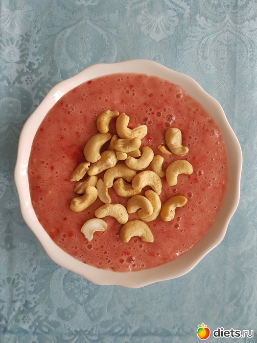 На завтрак было смузи из клубники, банана и орешков 30 гр :