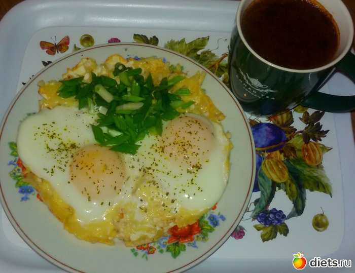 Замочила лаваш в молоке (пару ложек), добавила сыр и на сковороду. Сверху пару яиц и под крышку до их готовности. Кстати, яйца получились, как яйца-пашот. получилось очень вкусно. Плюс кофе.