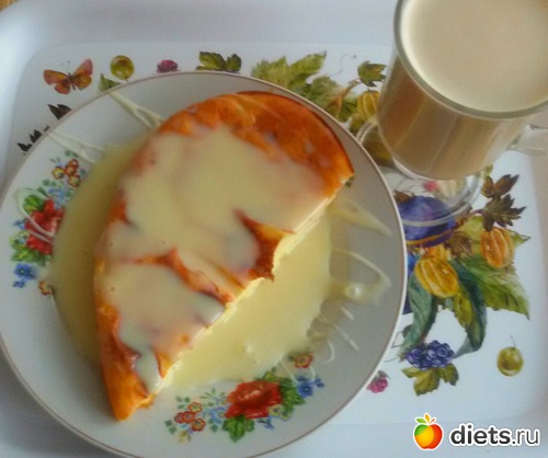 Запеканка: творог, яйцо, мука рисовая. Я так и сырники делаю. Много муки не сыплю. Если смесь получается жидковатой, делаю запеканку.