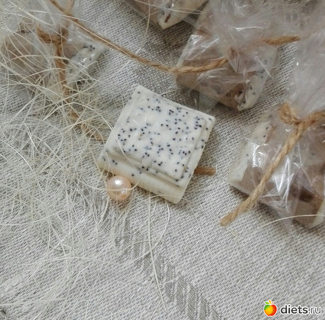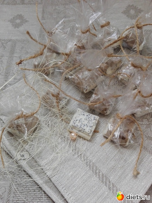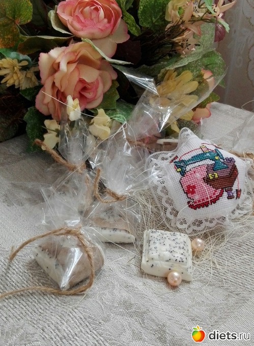 Получилось пятнадцать миниатюрных мыльцев-скрабиков, очень нежных и симпатичных.