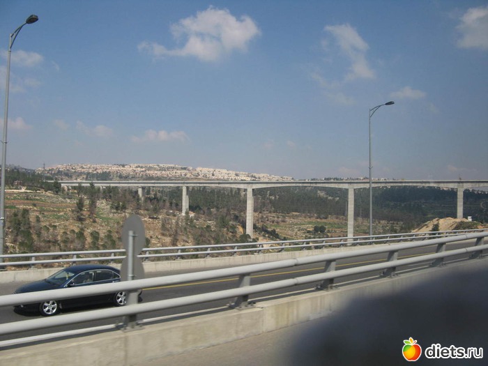 Это уже из автобуса - тянут железную дорогу к столице. Размах - дух захватывает, жаль на фотке не очень видно, какая там высотища...