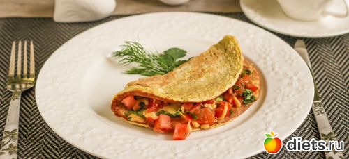 Этот рецепт идеально подходит для диеты. Яйцо взбейте со щепоткой соли, добавьте 80 мл воды, 40 г хлопьев и 15 г овсяных отрубей. Дайте настояться и поджарьте.