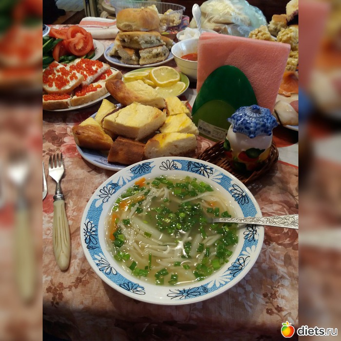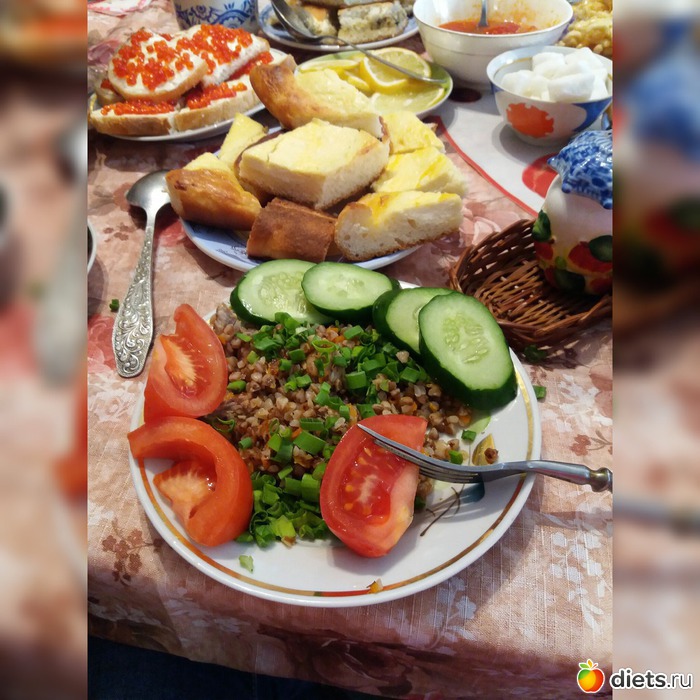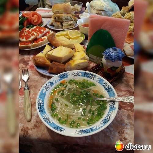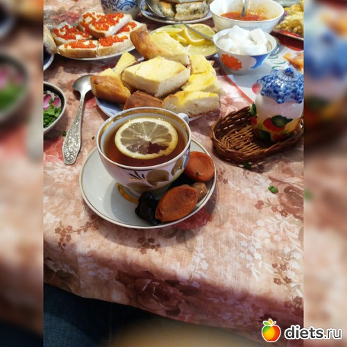 Вечером муж нас забрал от мамы домой. До этого мы успели ещё заехать на обед по поводу годины одного его родственника. Стол там, конечно, ломился от явств, но мне особо ничего нельзя