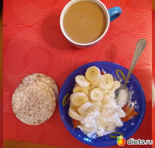 творог 9%+сметана, банан, хлебцы, кофесливки