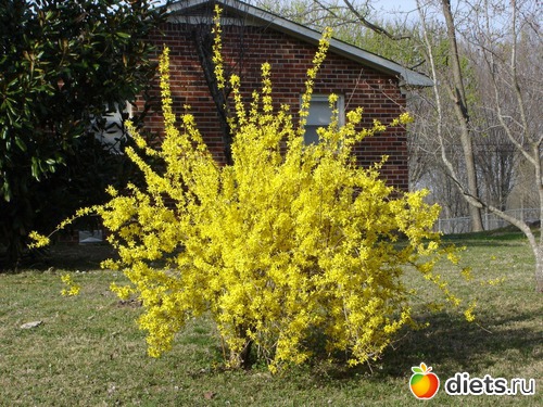Очень красивый куст, в начале марта появляются желтые цветочки полностью по всему кустукусту, а потом все лето зеленые листочки.