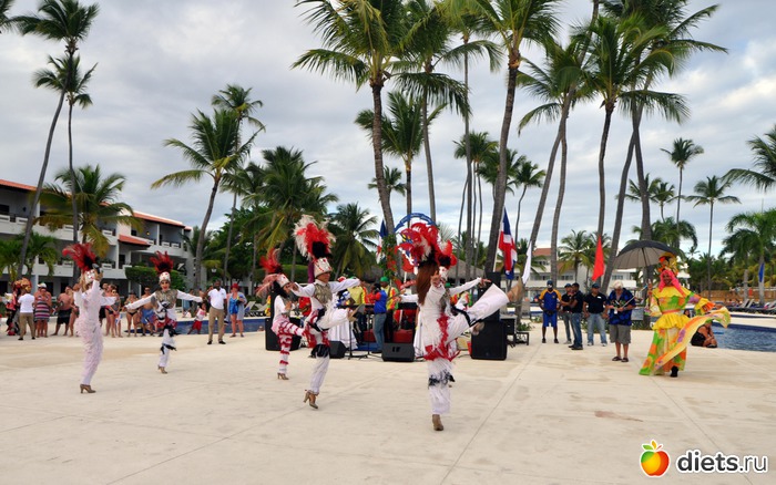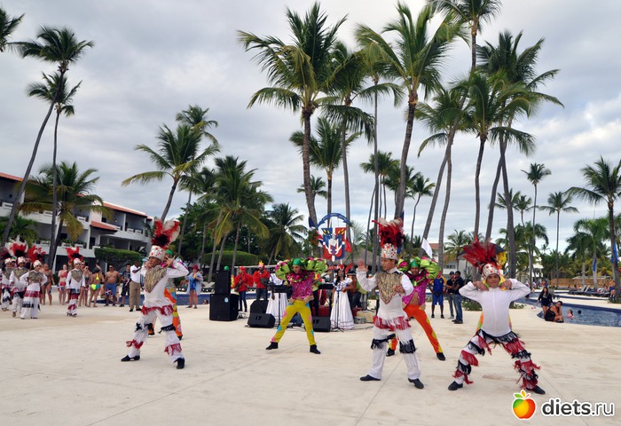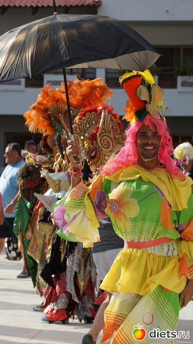 В нашем отеле был карнавал, развлекательная программа, в которую входили, конечно же, танцы и песни, нарядные ряженые, на площади всех угощали национальным напитком мамахуана (не путать с марихуаной
