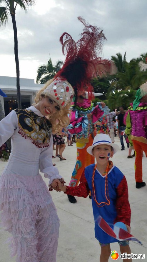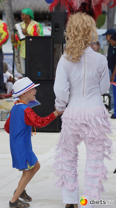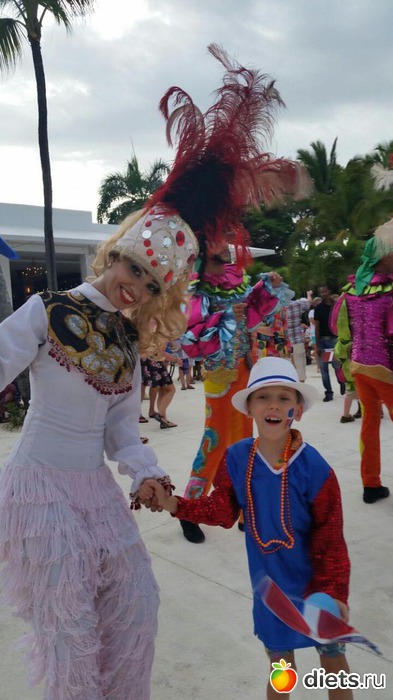 Все это выступление днем, в жару +25 или +27 и тропической влажности) Я после моря, и не укладывала волосы, естественная такая, без завивок там всяких. Кстати, о прическах: розетки там американские, а напряжение в сети 110 Вт, не 220, как у нас. Поэтому плойку свою я брать не стала, был бы только лишний груз с собой тащить в отпуск, перевесы потом ))