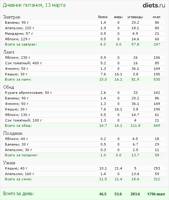Калорийность продуктов