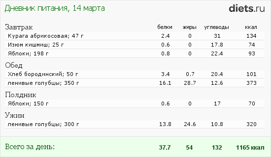 я не знаю вроде порции огромные- и считаю вроде правильно, сегодня опять взвешиваться ходила на проф. весах- вес тот же показал а вот расход калорий у меня в покое-1463к..... как девочка там объяснила- если есть меньше этого количества- будешь худеть..... посмотрим.....