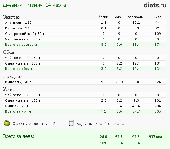 . Я стараюсь ее увеличить, но на этих продуктах это нелегко - либо повышать объемы съеденного, либо заменять эти продукты другими, но второй вариант мне не нравится. Я не голодна, даже наоборот. Сотрудники смеются надо мной в обед, говорят, что мои порции еды стали гораздо больше с тех пор, как я села на диету. А я говорю, что это не диета, а другая система питания.